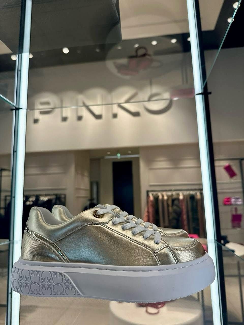 Złote sneakersy Pinko
